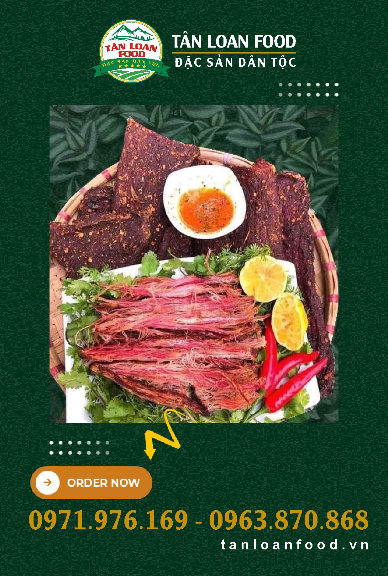 Với mong muốn những sản phẩm mang hương vị đặc trưng của vùng núi phía Bắc – Tây Bắc đến với bếp ăn của mọi gia đình Việt, Tân Loan Foods mang đến những sản phẩm đậm đà bản sắc dân tộc : Thịt trâu sấy, thịt lợn sấy, ba chỉ sấy, lạp xưởng sấy.